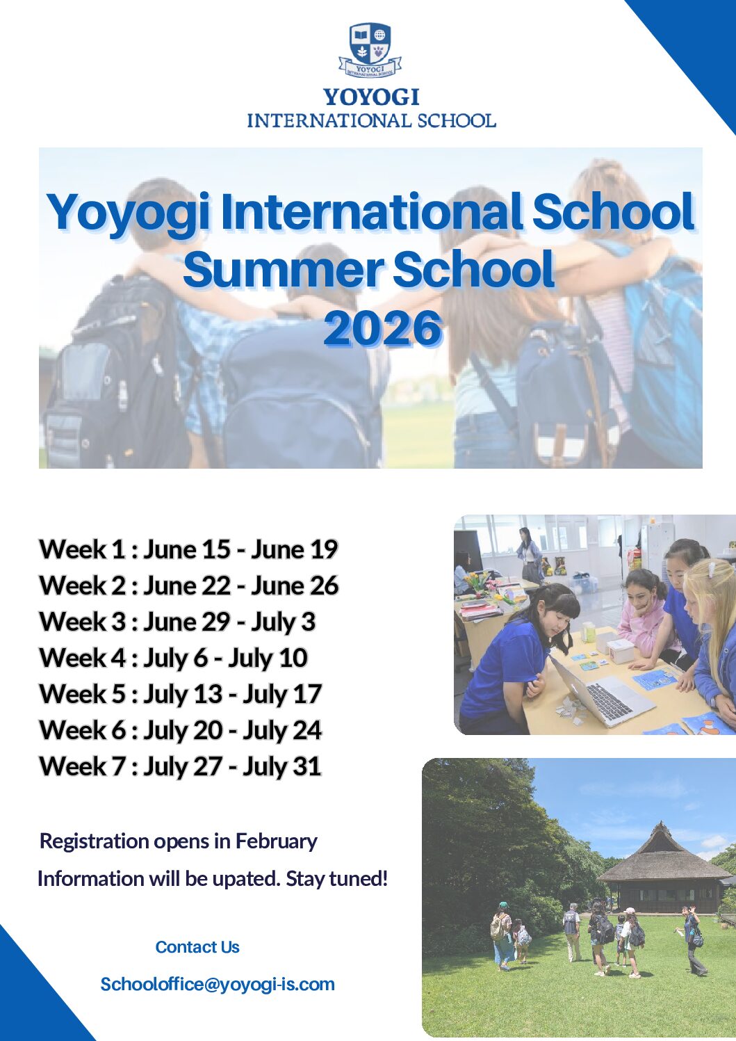 Summer School 2026 2025/12/11 Our Summer School will run from June 15 for 7 weeks until July 31.More information will be updated. ホームnewsSummer School 2026 閉じる